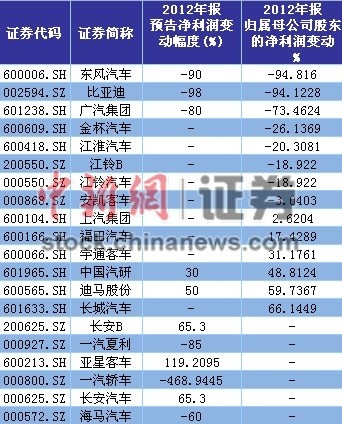 此外,在發布2012年業績預告的車企中,除一汽轎車凈利同比大降468.9%外,一汽夏利和海馬汽車業績也出現下滑,凈利較上年同期分別下降85%和60%。