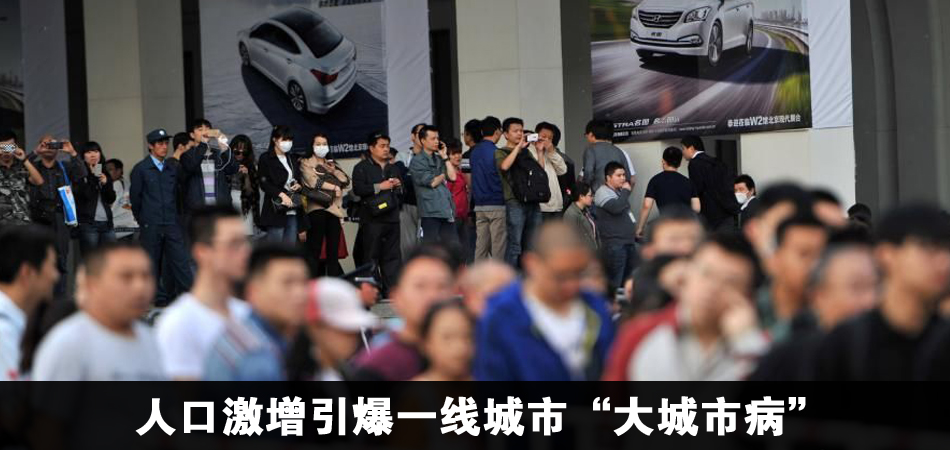 在北京、上海、廣州等特大城市,每年增加的常住人口數量達到四五十萬人,相當于一個中小城市的規模。有專家表示,北京目前常住人口已是1986年的兩倍多,相當于“26年長出一個北京城”。