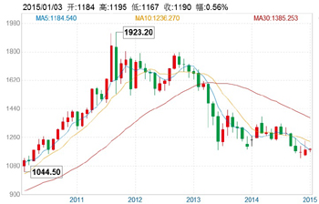 國際金價在美聯(lián)儲加息靴子落地之前料將難以見到大幅度的反彈。大多數(shù)人士對于金價2015年走勢的預(yù)期都比較悲觀。法國興業(yè)銀行認(rèn)為,美國經(jīng)濟復(fù)蘇和利率上升將令金價處于下行趨勢中。高盛預(yù)計2015年12月,國際金價將跌至每盎司1050美元的水平。2014年基本金屬市場也隨著油價的暴跌而大幅下挫。原油價格下跌可能進一步拉低通脹預(yù)期,并導(dǎo)致基本金屬被大量出售。分析指出,由于油價下跌,避險情緒主宰市場,基本金屬價格短期內(nèi)仍將維持在低位,但是正在逐漸找到支撐,比如中國、歐洲和日本實施經(jīng)濟刺激措施的可能性,以及美國經(jīng)濟強勁的復(fù)蘇勢頭等。