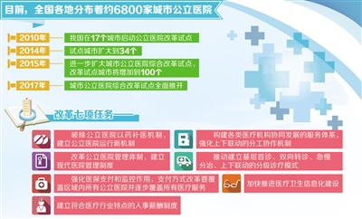 根據《意見》要求,改革試點城市由2014年的34個增加到今年的100個,2017年所有地級以上城市都將全面推進公立醫院改革。