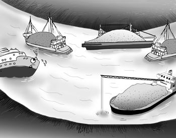 洞庭湖出口處至洞庭湖大橋水道,儼然已成采砂業的“集貿市場”。《經濟參考報》記者在這里看到,上百艘運砂船、挖砂船在進行交易。航運業內將從洞庭湖大橋下通過叫“練梅花樁”,稍有不慎就會發生船只碰撞甚至傾覆的事故,從湘資沅澧四水匯入洞庭湖的船只大多不得不由此“過關”,最后匯入長江。