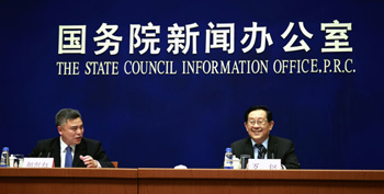 2月24日,國務院新聞辦公室在北京舉行新聞發布會,邀請科技部部長萬鋼(右)介紹科技改革和創新發展有關情況,并答記者問。 新華社記者 潘旭/攝 |