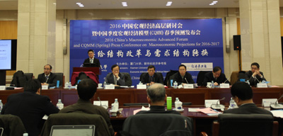 2月25日,廈門大學與新華社經濟參考報社在京聯合舉行“中國宏觀經濟高層研討會暨中國季度宏觀經濟模型(CQMM)2016春季預測發布會”。? 本報記者 王皓然/攝?