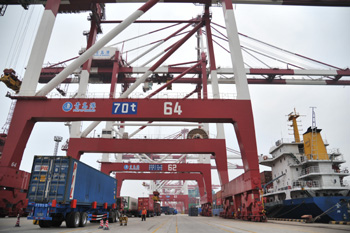 去年因國內(nèi)產(chǎn)能過剩、航運業(yè)低迷,港口業(yè)亦經(jīng)營困難。青島港國際貨運物流公司相關負責人告訴記者,在嚴峻的經(jīng)濟形勢下,去年國內(nèi)各主要港口的經(jīng)營情況都不太樂觀。以最能反映外貿(mào)情況的集裝箱重箱為例,2015年青島港的重箱吞吐量增幅只有3.6%,相比前幾年兩位數(shù)增長低了很多。