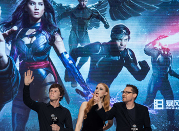 5月19日,電影《X戰(zhàn)警:天啟》見(jiàn)面會(huì)在北京舉行,主演伊萬(wàn)·彼得斯、索菲·特納以及該片導(dǎo)演布萊恩·辛格(從左至右)同粉絲互動(dòng)。 記者 陳君清/攝? |