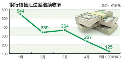 國家外匯管理局新聞發言人表示,5月份我國外匯供求狀況進一步趨向平衡。首先,銀行結售匯逆差繼續收窄,5月份,銀行結售匯逆差為125億美元,環比下降47%,日均逆差連續5個月下降。1月至4月,銀行結售匯逆差分別為544億、339億、364億和237億美元。其次,非銀行部門涉外收付款逆差擴大但外匯收付由逆轉順。5月份,非銀行部門涉外收付款逆差235億美元,前4個月分別為558億、305億、261億和89億美元。其中,5月份非銀行部門涉外外匯收付小幅順差2億美元,1月至4月分別為逆差201億、105億、59億和20億美元。