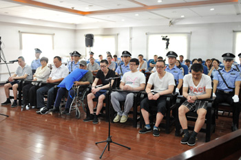 7月6日,北京最大涉案金額非法集資案一審開庭,8名被告人在北京市朝陽區人民法院參加庭審。 新華社發(曹璐 攝)? |