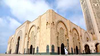而在卡薩布蘭卡,有一座清真寺舉世聞名,那就是全世界現代化程度最高以及世界第三大的清真寺哈桑二世清真寺。遠遠看去,它似乎像一座漂浮在海上的清真寺,因為其中有三分之一的面積建在海上,以此來紀念摩洛哥的阿拉伯人祖先來自海上。而這個位置,也算得上伊斯蘭世界的最西端。