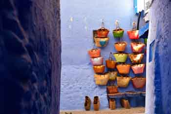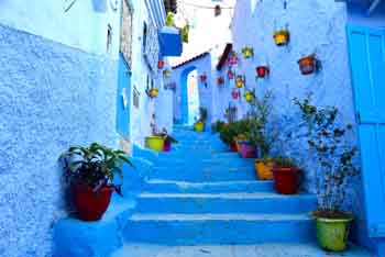關于為什么會出現這座藍色小鎮,說法不一。一種說法是這里的猶太人將他們摯愛的藍白色涂在了這里。另一種說法是藍色可以防蚊。而我去詢問了當地人,被告知因為這座小城因依山而建非常炎熱,所以當時人們就自發地將這里全部刷成了藍色。不禁感嘆這是多么浪漫的避暑方式。