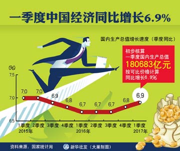 國家統計局17日公布了最新的國民經濟運行數據。數據顯示,今年一季度,國內生產總值(GDP)為180683億元,按可比價格計算,同比增長6.9%。從投資、工業生產、進出口等多項數據來看,一季度增長超出市場預期。