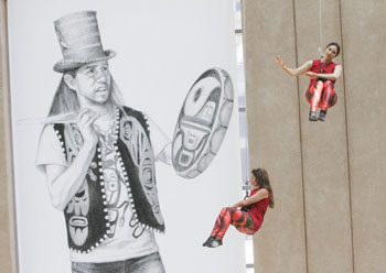 ??? 7月23日,在加拿大溫哥華,舞者們在溫哥華圖書館大樓外墻進行空中舞表演。當(dāng)日,溫哥華Aeriosa舞蹈團在溫哥華圖書館大樓進行空中舞表演。舞者們被繩索懸掛在五層高的大樓上,把大樓外墻變成舞臺,隨著音樂展現(xiàn)優(yōu)美的舞姿。新華社發(fā)(梁森 攝) |