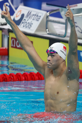 ??? 7月25日,在匈牙利布達佩斯進行的第17屆國際泳聯(lián)游泳世錦賽男子200米自由泳決賽中,中國選手孫楊以1分44秒39的成績奪得冠軍。新華社發(fā)(弗爾季·奧蒂洛 攝) |