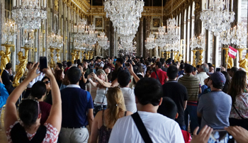 ??? 7月30日,在法國巴黎郊外的凡爾賽宮,游客在鏡廳內參觀游覽。新華社/路透 |