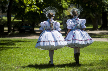 ??? 7月30日,在匈牙利包洛紹焦爾毛特,兩名婦女身著傳統服裝參加保洛茨節活動。當日,紀念圣安娜的保洛茨節在包洛紹焦爾毛特舉行。保洛茨人居住在匈牙利北部地區,是擁有自己傳統和方言的一個匈牙利民族。新華社/歐新 |