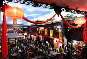 ??? 據國家旅游局數據中心綜合測算,國慶加中秋“超級黃金周”期間,全國共接待國內游客7.05億人次,實現國內旅游收入5836億元,按可比口徑前7天與2017年同比計算,分別增長11.9%和13.9%。另據商務部監測,10月1日至8日,全國零售和餐飲企業實現銷售額約1.5萬億元,日均銷售額比2016年“十一”黃金周增長10.3%。圖為游客在河南開封小宋城美食街參觀游覽。記者 朱祥 攝 |