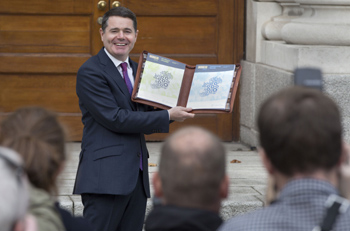 ??? 10月10日,在愛爾蘭首都都柏林,財政部長帕斯卡爾·多諾霍展示2018財年預算案。愛爾蘭政府10日向議會提交2018財年預算案。多諾霍表示,新財年將大幅增加衛生、教育、住房、公共交通、社會福利等領域的預算開支。新華社/法新 |