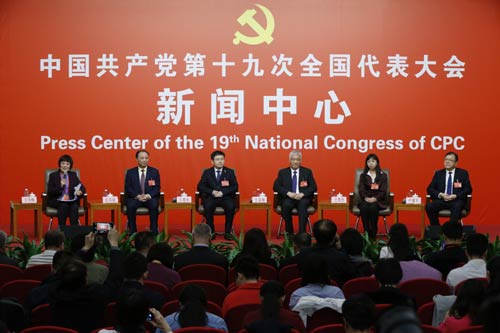 10月20日,中國共產黨第十九次全國代表大會新聞中心舉行主題為“實施創新驅動發展戰略”的集體采訪活動。科技部黨組書記、副部長王志剛,中國科學院遺傳與發育生物學研究所研究員、分子系統生物學研究中心主任王秀杰,浪潮集團首席科學家、中國工程院院士王恩東,陜西省委科技工委書記、科技廳廳長盧建軍,南昌大學副校長江風益接受采訪。新華社記者 沈伯韓 攝