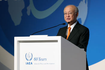 ??? 10月30日,在阿拉伯聯合酋長國首都阿布扎比,國際原子能機構總干事天野之彌在第四屆21世紀核能部長級國際大會上講話。第四屆21世紀核能部長級國際大會10月30日在阿布扎比開幕,與會各方強調推動核能安全可持續發展。新華社/法新 |