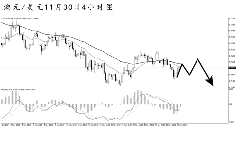 ▲澳元兌美元連續震蕩回落。均線系統的壓制位被升破后,價格沒有加速上沖,目前重新挑戰0.7530的低點,且再度跌破的概率較大。短線匯價的盤整節奏較為凌亂,預計澳元在此位置調整后有望先發起一波下行走勢。