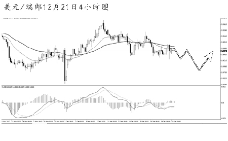 ▲美元兌瑞郎逐步震蕩走低。匯價圍繞均線系統反復穿越,盤整走勢十分明顯。短線的主趨勢較難判斷,考慮到匯價頻繁創出近期新低,后市發起上調的概率較大,但若做多需首先等待多頭動能的爆發。