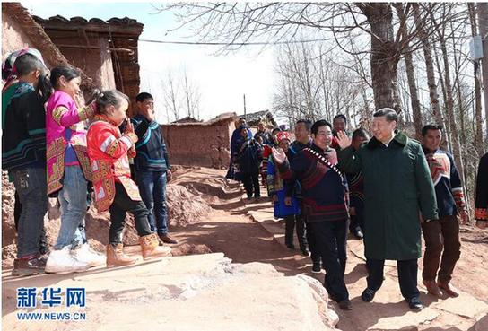 2月11日上午,習近平總書記驅車2個多小時,從西昌市來到位于大涼山深處的昭覺縣三岔河鄉三河村、解放鄉火普村,走進彝族貧困群眾家中,看實情、問冷暖、聽心聲,同當地干部群眾共商精準脫貧之策。新華社記者 鞠鵬 攝
