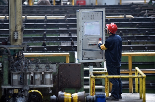 技術人員在天津鋼管集團廠區操作儀器設備。記者 李然 攝