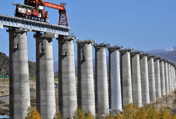 近日,川藏鐵路拉薩至林芝段昌果特大橋開(kāi)始鋪設(shè)行軌排、架設(shè)梁片,標(biāo)志著川藏鐵路拉林段正式進(jìn)入鋪軌階段。記者 覺(jué)果 攝