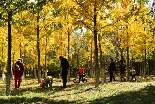 游客在北京通州大運河森林公園游玩。記者 羅曉光 攝