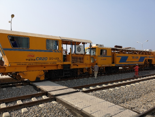 本格拉鐵路項(xiàng)目正式移交簽約儀式近日在安哥拉港口城市洛比托舉行。本格拉鐵路橫貫安哥拉全境,全長(zhǎng)1344公里,由中鐵二十局集團(tuán)公司總承包,全部采用中國(guó)鐵路建設(shè)標(biāo)準(zhǔn)。這是10月3日在安哥拉的本格拉鐵路洛比托站拍攝的大型維護(hù)機(jī)械。