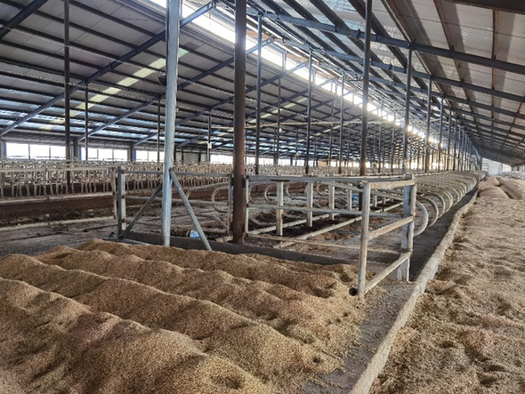 記者走遍全部6棟牛舍,發現空無一牛,有的牛舍中晾了一些稻谷。偌大的養牛場,只剩更夫一人。更夫介紹,他從2020年春節后來到這里,就沒看到一頭牛,牛場榨奶廳只安裝了暖氣片,連榨奶設備都沒有。目前牛場因拖欠建設資金,已被承建方訴到法院進行了財產保全,牛舍全被查封,他是替保全方看大門的。