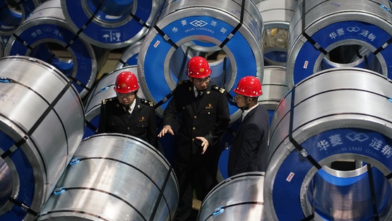 12月24日,海關工作人員在湖南省婁底市湖南華菱漣源鋼鐵有限公司工作。記者 戚曉毅 攝