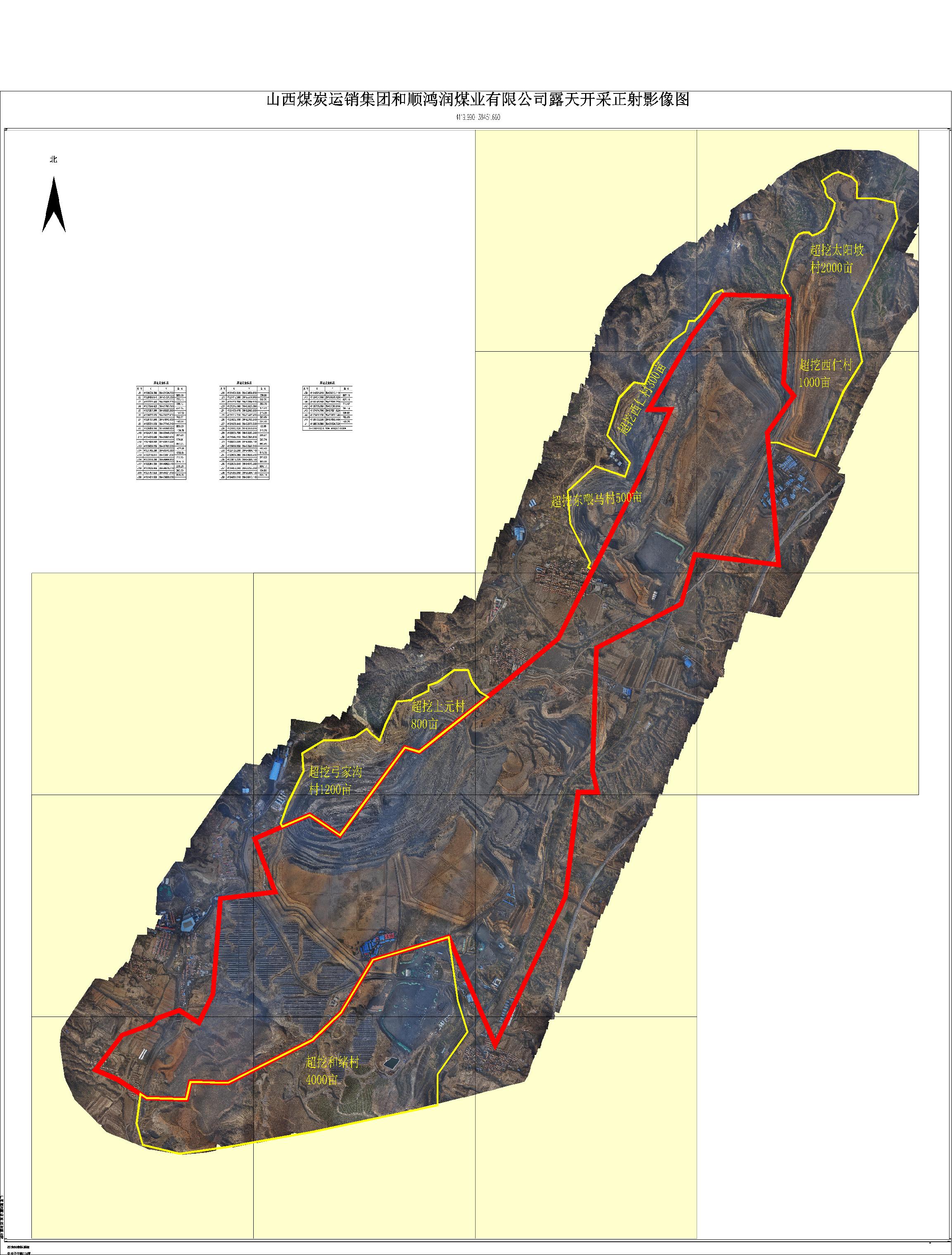 有知情人士披露,該礦區(qū)存在嚴(yán)重越界非法開采行為。一家甲級(jí)資質(zhì)的測(cè)繪單位提供的該礦區(qū)露天開采正射影像圖顯示,該礦區(qū)越界范圍為河緒村4000畝、弓家溝村1200畝、上元村800畝、東喂馬村500畝、西仁村1300畝、太陽坡村2000畝,共計(jì)9800畝。