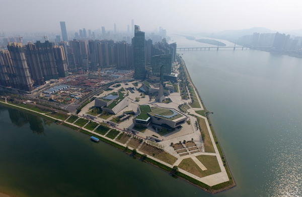 俯瞰湖南長沙湘江邊北辰三角洲沿岸風光帶。記者 龍弘濤 攝