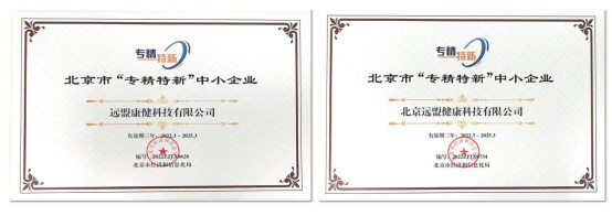 ▲ 專精特新證書-遠盟康健集團(左)北京遠盟健康(右)