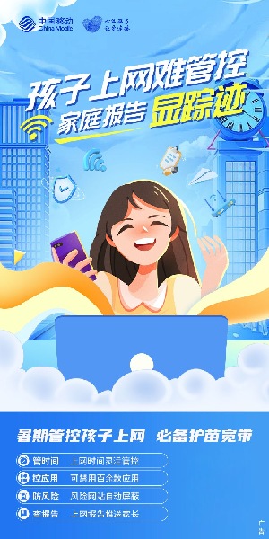 移動互聯網時代,網絡早已成為青少年生活學習的“標配”,尤其是對于“00后”和“10后”來說,更是“帶著鼠標出生”“伴著手機長大”。暑假期間,青少年接觸網絡更加便捷、時間大幅增加,再加上自律不足、缺乏社會經驗,極易遭受不良信息、網絡詐騙等不法行為的侵害。中國移動護苗寬帶,為青少年提供了一個綠色優質的網絡環境,在這個悠長的暑假,讓孩子安心學習,家長也能卸下“網絡監督管理員”的重任。