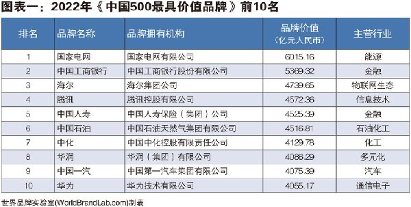 7月26日,由世界品牌實(shí)驗(yàn)室(World Brand Lab)主辦的(第十九屆)“世界品牌大會(huì)”在北京舉行,會(huì)上發(fā)布了2022年《中國(guó)500最具價(jià)值品牌》分析報(bào)告。在這份基于財(cái)務(wù)數(shù)據(jù)、品牌強(qiáng)度和消費(fèi)者行為分析的年度報(bào)告中,國(guó)家電網(wǎng)、中國(guó)工商銀行、海爾成為中國(guó)最具價(jià)值的前三大品牌。其中,海爾連續(xù)十九年登上這一榜單,蟬聯(lián)中國(guó)品牌前三,品牌價(jià)值高達(dá)4739.65億元。