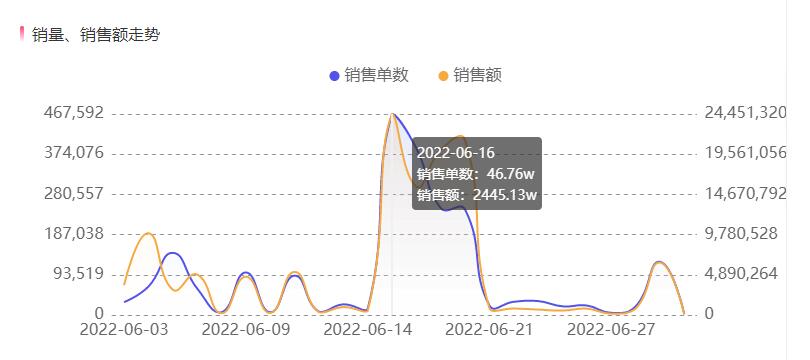 6月16日-6月19日,蘑菇街主播“小甜心_呢”連續(xù)多場直播實(shí)現(xiàn)單場GMV超1500萬,其中,6月16日的單場直播銷售額預(yù)估達(dá)2445.13萬,直播銷量預(yù)估46.76萬,10款商品單品銷量超萬單,單品最高銷量預(yù)估14.36萬,單品最高銷售額預(yù)估達(dá)413.89萬。