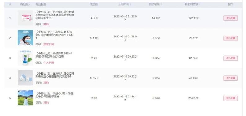 以小甜心在6月16日的直播數(shù)據(jù)為例,衛(wèi)生巾、口罩、牙膏、洗臉巾等生活必需品在小甜心直播間熱賣,其中,在高粉絲粘性的基礎(chǔ)上,甜心定制衛(wèi)生巾熱賣14.38萬單: