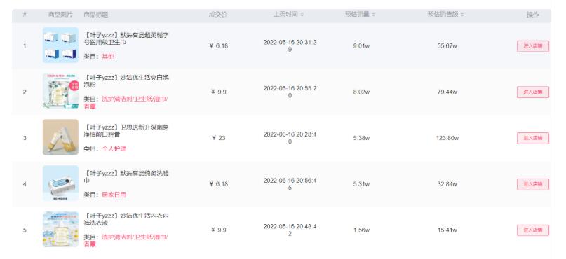 6月16日,衛(wèi)生巾、牙膏、洗臉巾、洗衣液這類囤貨屬性強(qiáng)的日用百貨產(chǎn)品也在蘑菇街top主播葉子的直播間熱賣: