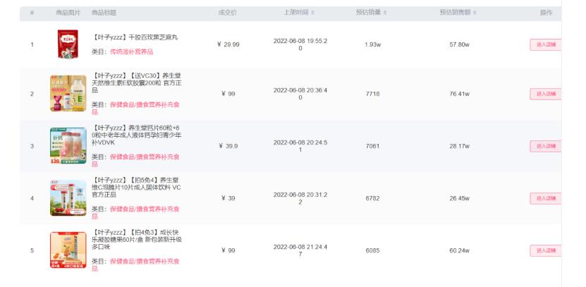 6月8日,蘑菇街主播“葉子yzzz”舉辦的保健養(yǎng)生專場直播單場GMV預(yù)估達(dá)528.24萬,銷量預(yù)估達(dá)10.04萬。黑芝麻丸、維E膠囊、鈣片、泡騰片等單品在葉子直播間熱賣,其中,黑芝麻丸單品銷量預(yù)估近2萬單: