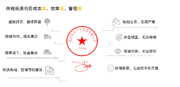 當下,數字化時代,對于企業的人力資源部門來說,每天需要重復處理大量的合同、文件等材料,加上企業人員的流動性大,一部分求職者的身份核實難,異地合同簽署不便,合同倉儲管理繁瑣,查閱不便以及印章也容易發生被盜風險等,一系列的問題導致人力資源部門的效率底下,成本卻不斷的在增加。