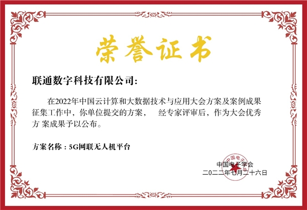 7月26日上午,2022中國云計算與大數據技術與應用大會在北京隆重召開。本次大會由中國電子學會主辦,旨在分析國內外云計算、大數據技術發展特點和趨勢,加快經濟社會數字化發展,深入推進實施“上云用數賦智”行動,賦能傳統產業轉型升級。會上,聯通數字科技有限公司5G網聯無人機平臺、場景云系列產品斬獲兩項優秀案例成果獎。