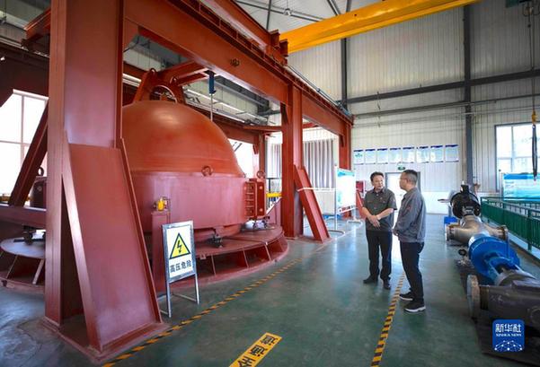 在位于寧夏吳忠市的吳忠儀表有限責任公司自動化產業園實驗室內,馬玉山(左)與技術人員交流(9月12日攝)。 新華社記者 楊植森 攝