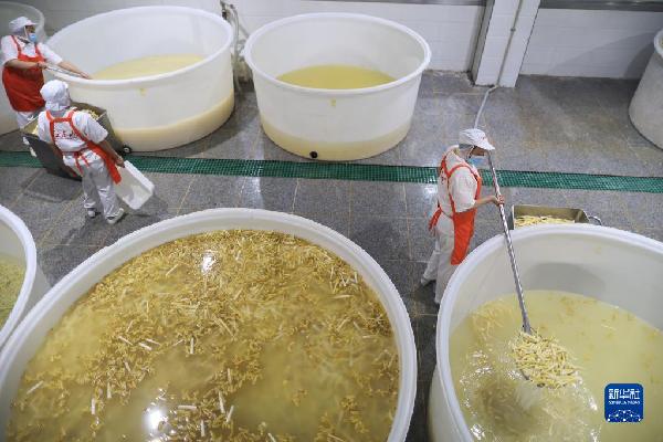 2022年11月30日,工人在貴州紅赤水集團有限公司車間內生產竹筍食品。新華社記者 劉續 攝