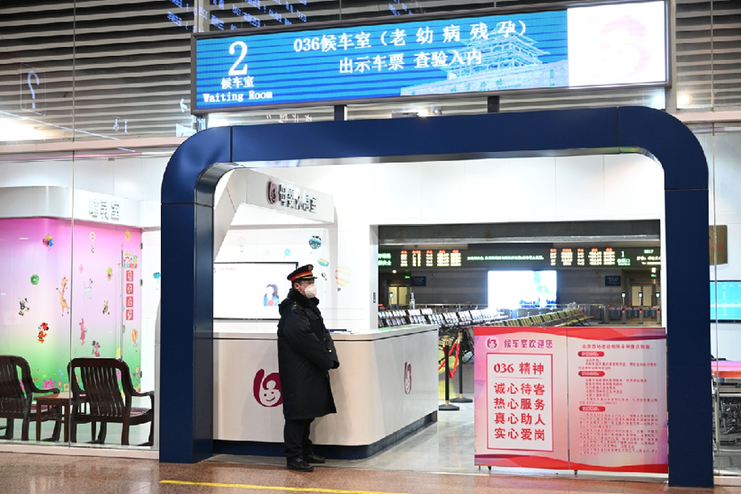 據了解,春運期間,北京西站加強了各個區域的通風消毒工作,特別是旅客接觸頻繁的檢票閘機、自動扣票機,還有電梯扶手、衛生間門把手等等,同時還為老人等不會使用智能手機的群體開通無障礙老年慢窗口,提供認票咨詢等服務。