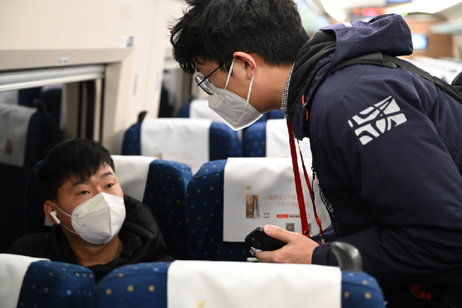 同車的孫先生則要趕往石家莊。在鐵路部門工作的他為了支援春運工作起了個大早,剛接受完記者采訪就閉上眼睛休息了起來。“這次疫情防控政策優化調整后,好多人都選擇回家過年,希望我的工作可以幫助到大家。”孫先生說。