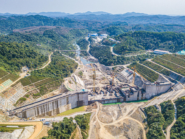 這是2月12日拍攝的邁灣水利樞紐工程(無人機(jī)照片)。