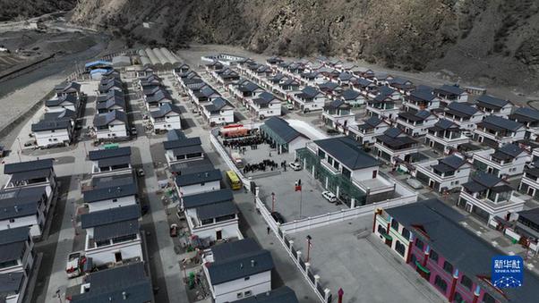 這是2023年2月15日拍攝的西藏隆子縣斗玉珞巴民族鄉(xiāng)繞讓搬遷安置點(無人機照片)。新華社記者 晉美多吉 攝