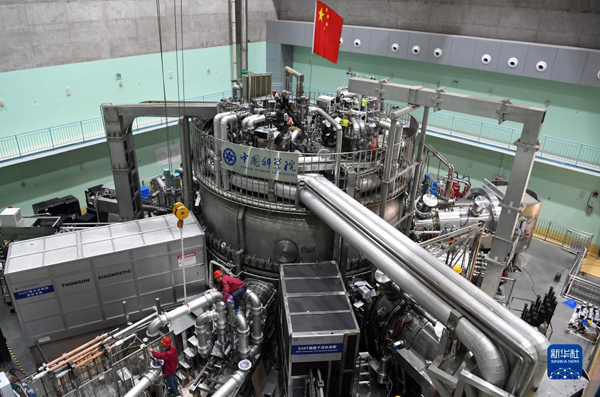在中科院合肥物質科學研究院,工作人員對有“人造太陽”之稱的全超導托卡馬克核聚變實驗裝置(EAST)進行升級改造(2021年4月13日攝)。新華社記者 劉軍喜 攝