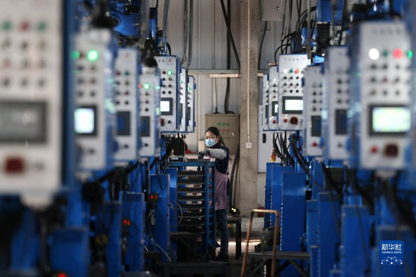 1月31日,工人在重慶市黔江區工業園區一電子科技公司生產車間加工電子元件。新華社發(楊敏攝)